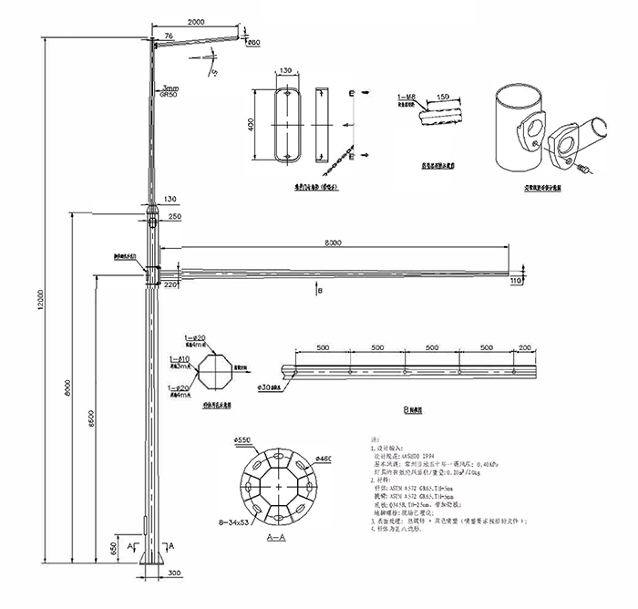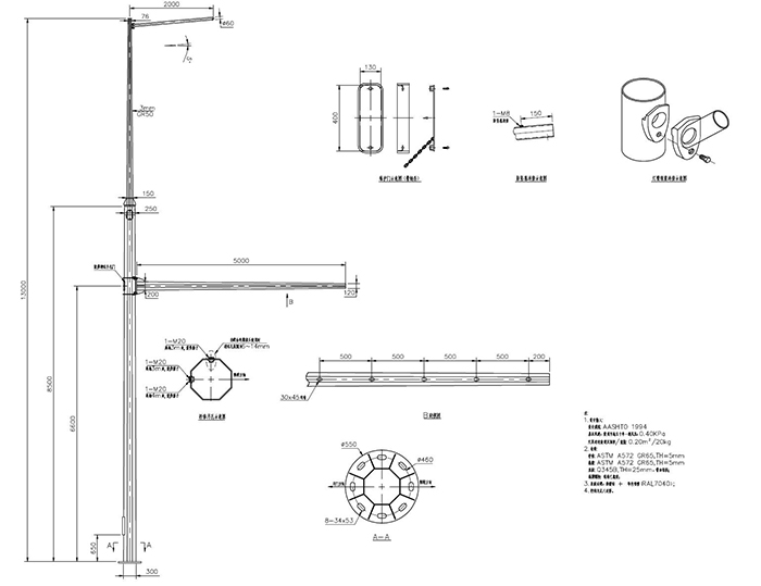 產(chǎn)品型號:多功能桿(單挑臂+紅綠燈)