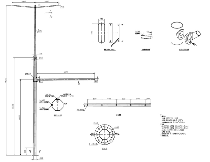 產(chǎn)品型號(hào):多功能桿(雙挑臂+紅綠燈)