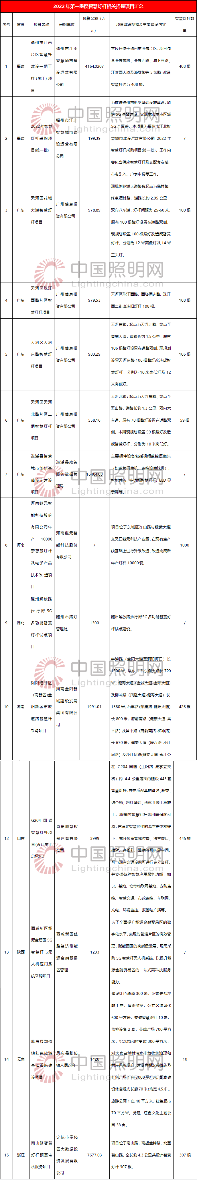 2022年第一季度智慧燈桿相關(guān)招標(biāo)項(xiàng)目匯總