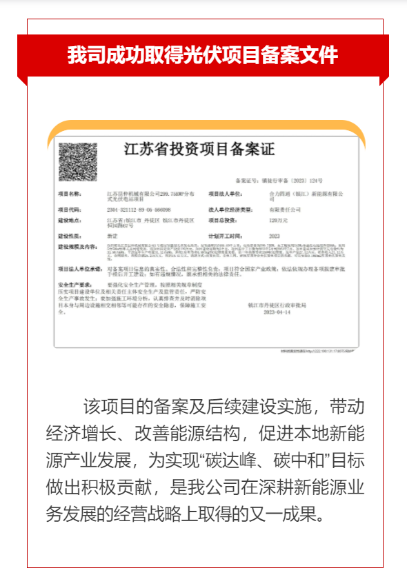 發(fā)展動態(tài)丨我司又一投資光伏項目備案!
