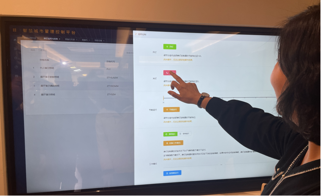 在參觀過(guò)程中,嘉賓們親自體驗(yàn)了合力四通HelloSmartCity智慧照明管理平臺(tái)。平臺(tái)操作界面設(shè)計(jì)簡(jiǎn)潔直觀,嘉賓們指尖點(diǎn)觸,進(jìn)行開(kāi)燈、關(guān)燈和調(diào)節(jié)亮度等操作,直觀地感受到智慧照明的便捷與智能。