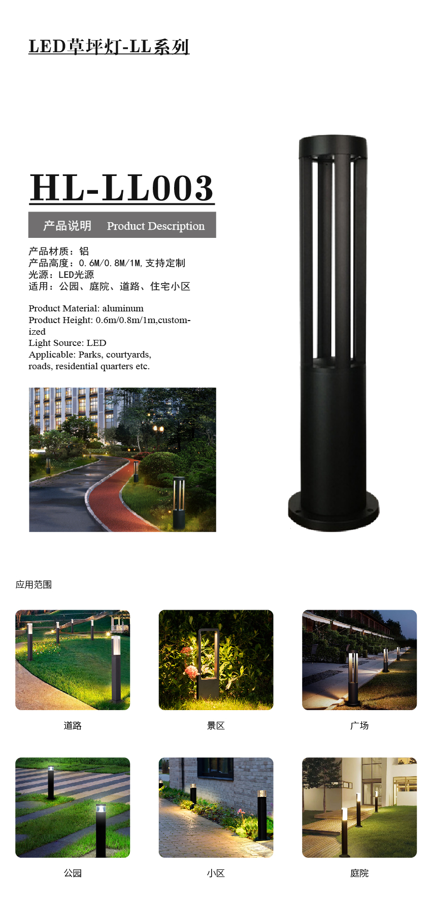 產(chǎn)品型號:HL-LL003草坪燈 應(yīng)用領(lǐng)域:產(chǎn)品中心 品牌:合力四通 銷售熱線:0511-85336035159-5127-9212