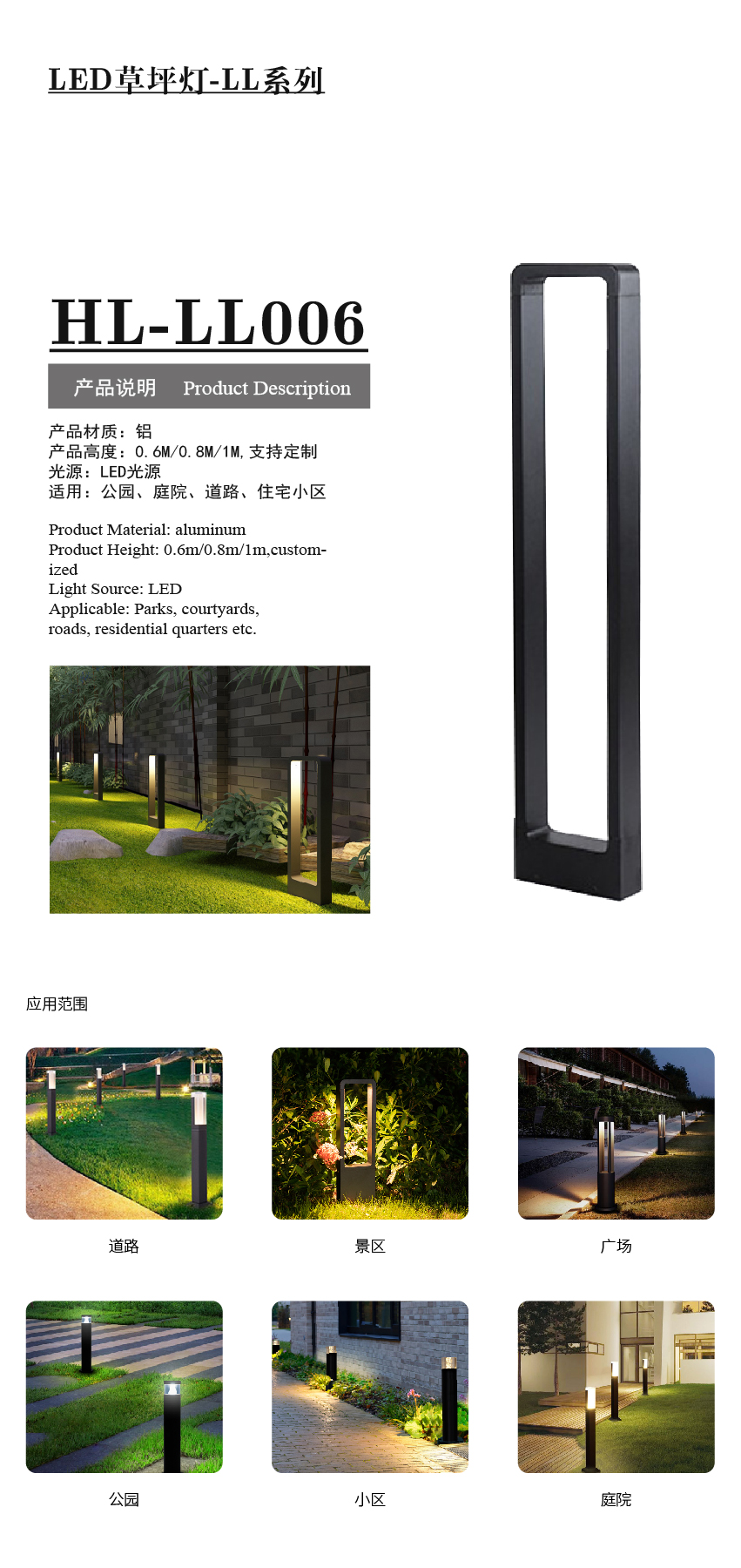 產(chǎn)品型號:HL-LL006草坪燈 應(yīng)用領(lǐng)域:產(chǎn)品中心 品牌:合力四通 銷售熱線:0511-85336035159-5127-9212