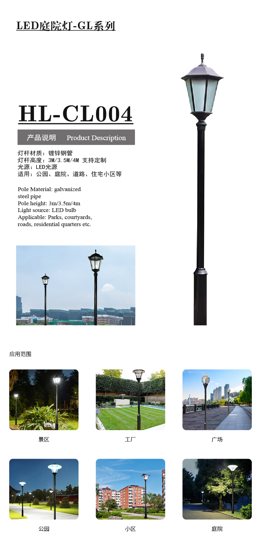 產(chǎn)品型號:HL-CL004庭院燈 應(yīng)用領(lǐng)域:產(chǎn)品中心 品牌:合力四通 銷售熱線:0511-85336035159-5127-9212