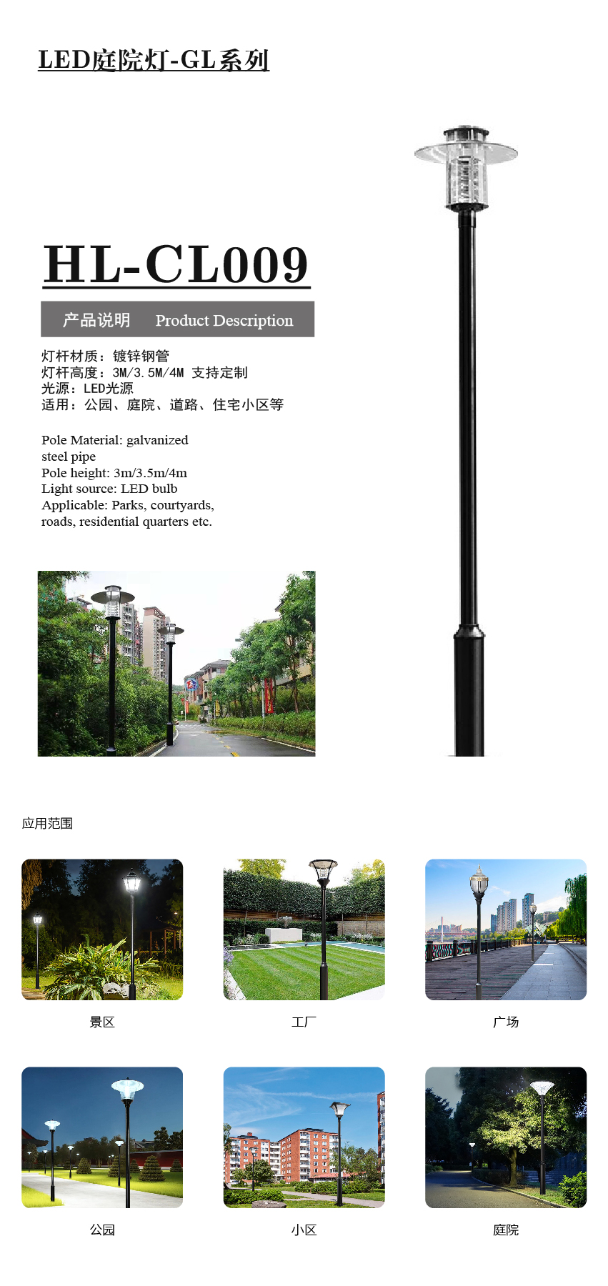產(chǎn)品型號:HL-CL009庭院燈 應(yīng)用領(lǐng)域:產(chǎn)品中心 品牌:合力四通 銷售熱線:0511-85336035159-5127-9212