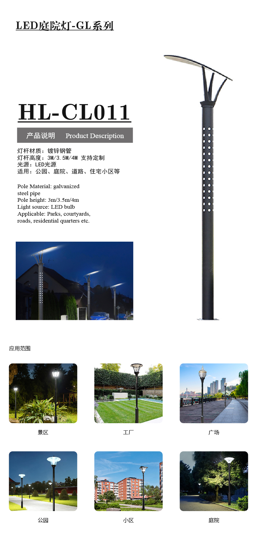 產品型號:HL-CL011庭院燈 應用領域:產品中心 品牌:合力四通 銷售熱線:0511-85336035159-5127-9212