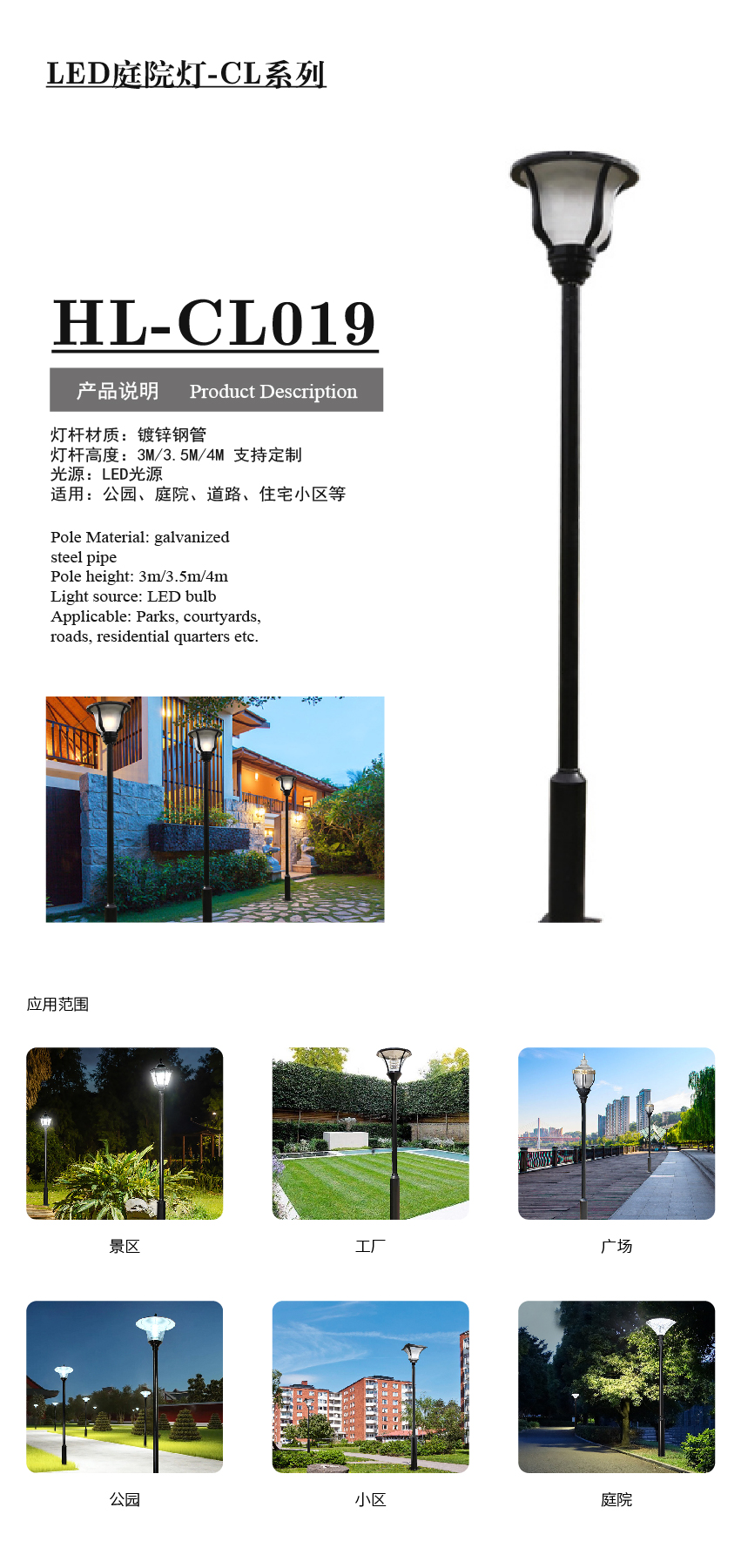 產品型號:HL-CL019庭院燈 應用領域:產品中心 品牌:合力四通 銷售熱線:0511-85336035159-5127-9212