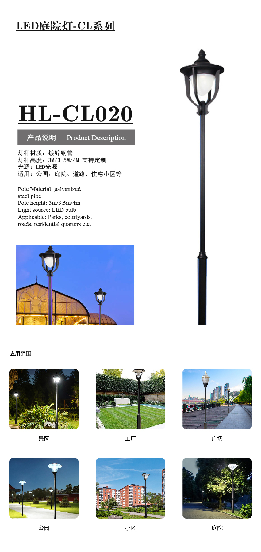 產(chǎn)品型號:HL-CL020庭院燈 應(yīng)用領(lǐng)域:產(chǎn)品中心 品牌:合力四通 銷售熱線:0511-85336035159-5127-9212