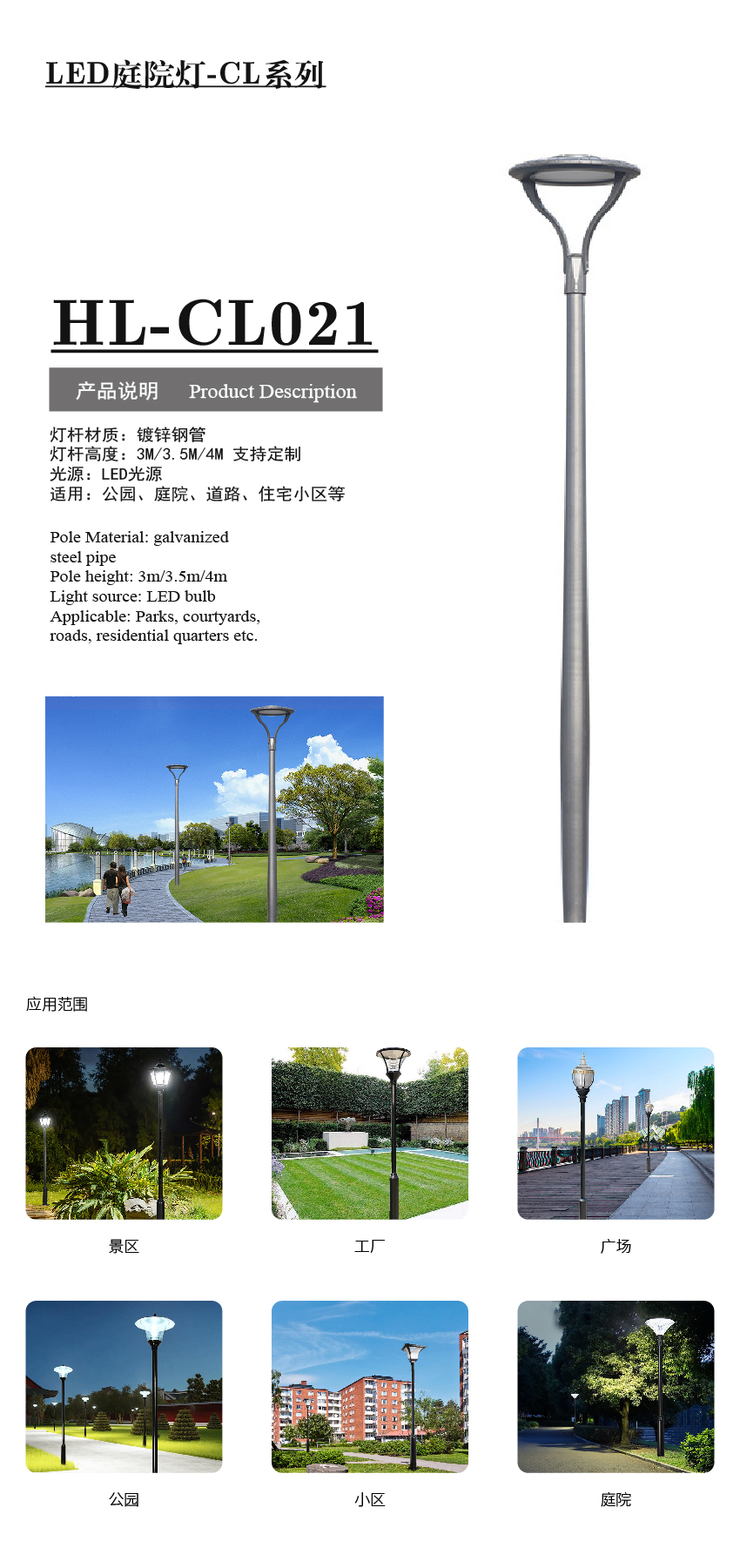 產(chǎn)品型號:HL-CL021庭院燈 應(yīng)用領(lǐng)域:產(chǎn)品中心 品牌:合力四通 銷售熱線:0511-85336035159-5127-9212