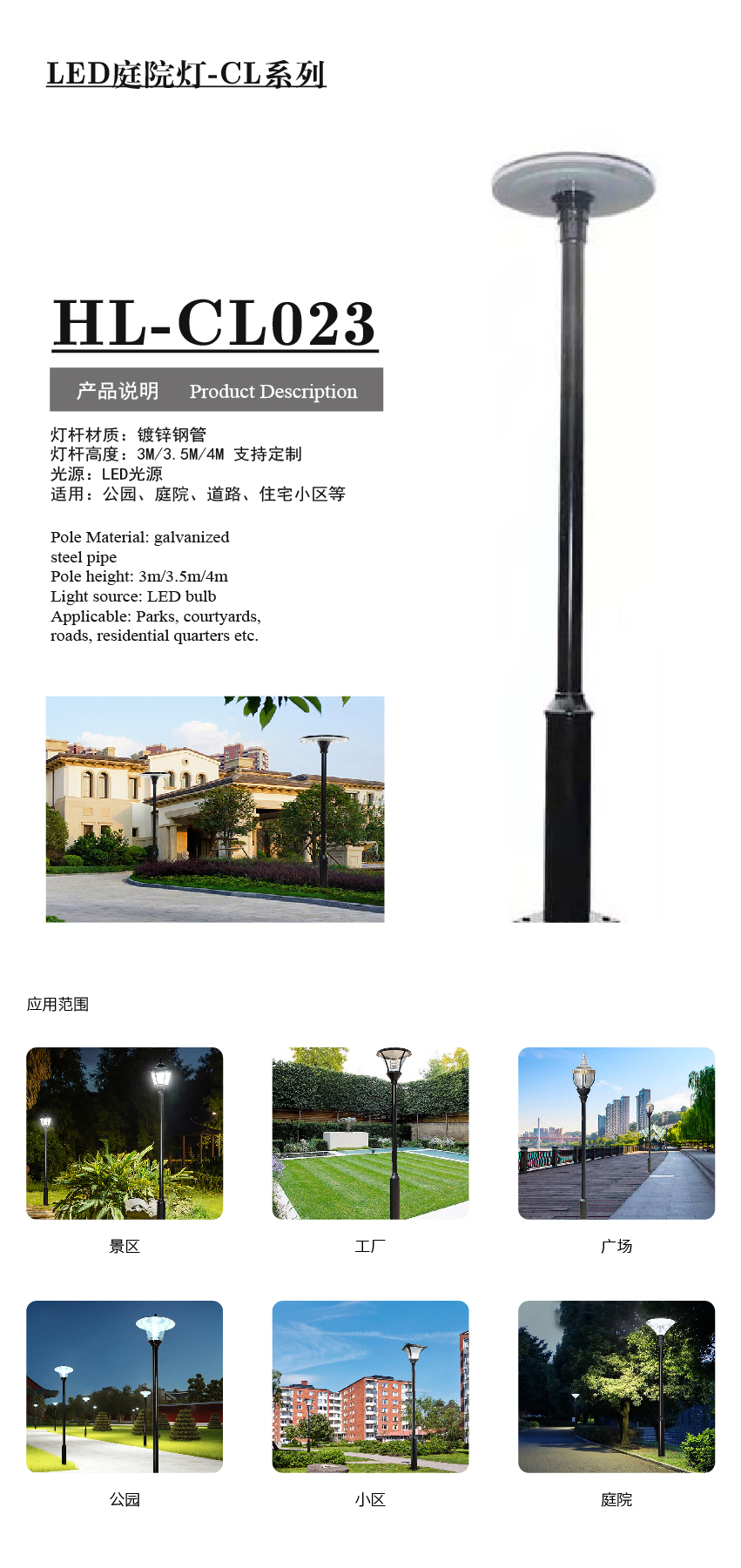 產(chǎn)品型號:HL-CL023庭院燈 應(yīng)用領(lǐng)域:產(chǎn)品中心 品牌:合力四通 銷售熱線:0511-85336035159-5127-9212