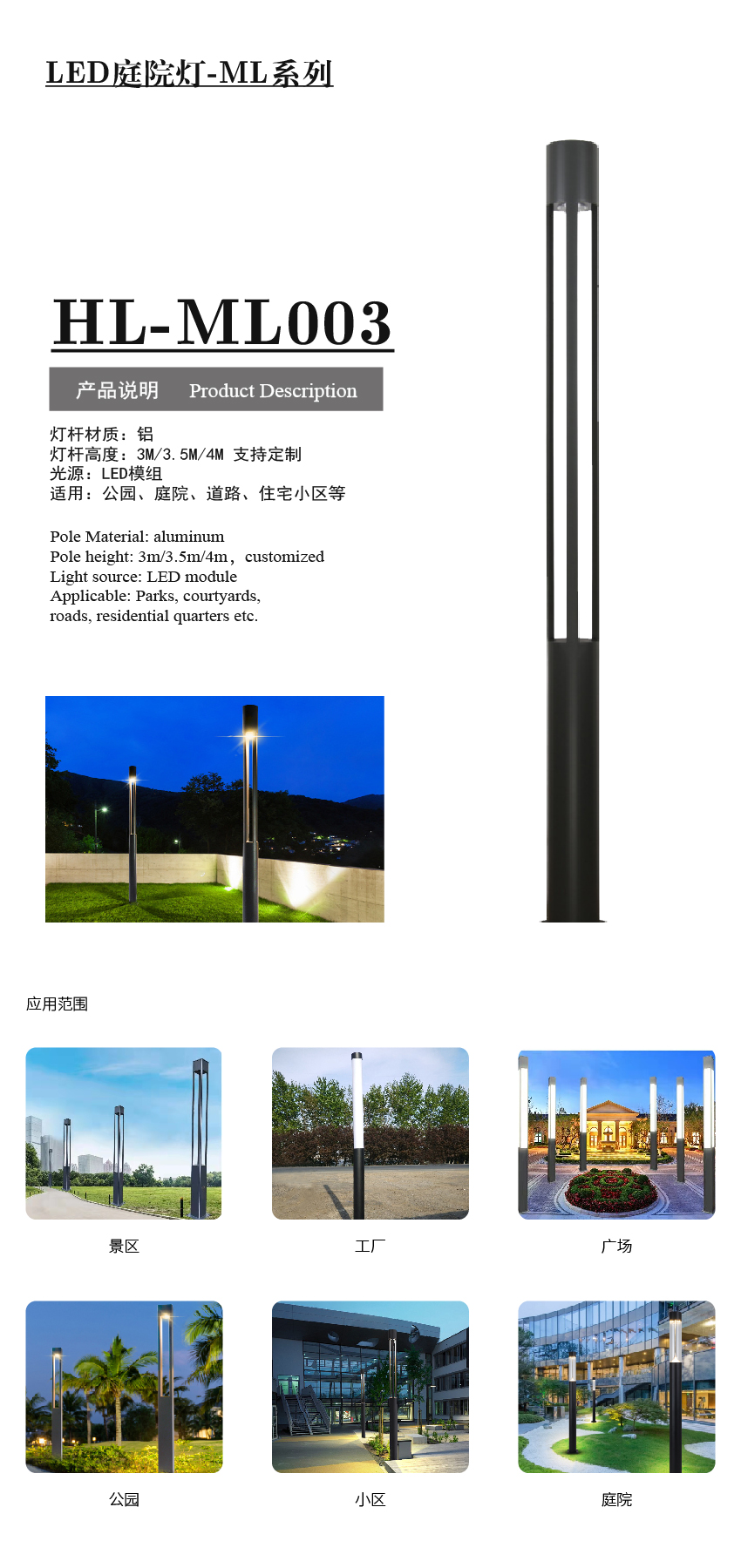產(chǎn)品型號:HL-ML003庭院燈 應(yīng)用領(lǐng)域:產(chǎn)品中心 品牌:合力四通 銷售熱線:0511-85336035159-5127-9212