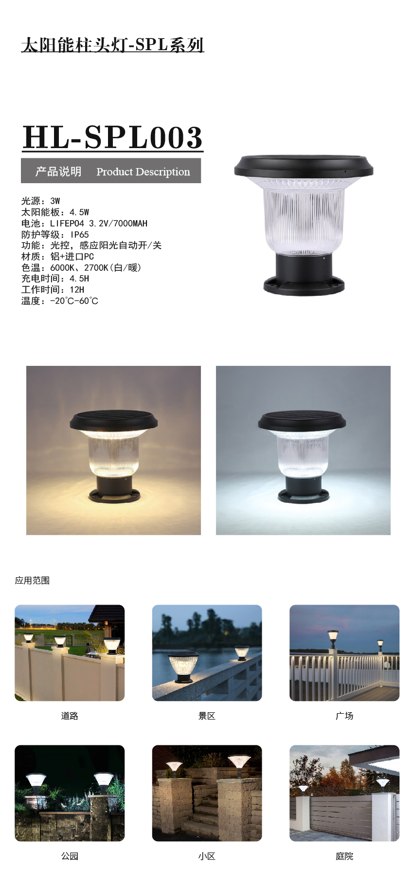 產(chǎn)品型號:HL-SPL003太陽能柱頭燈