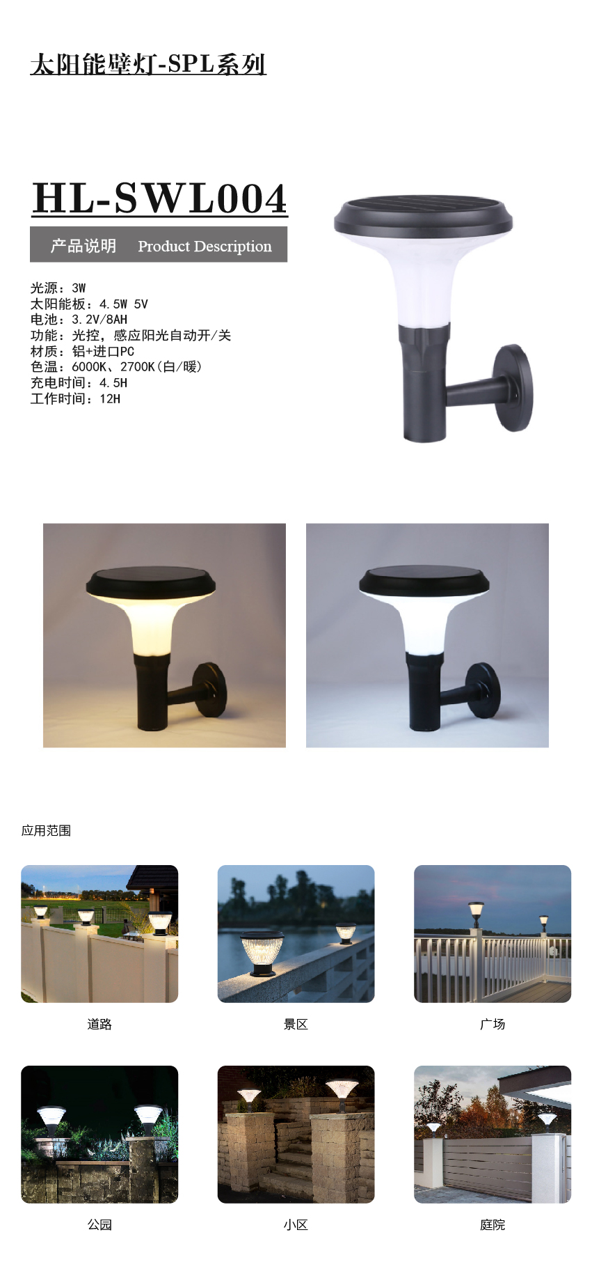 產(chǎn)品型號(hào):HL-SWL004太陽(yáng)能壁燈